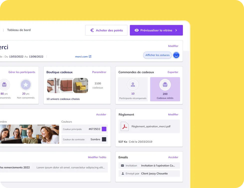 Avec notre plateforme cadeaux, vous transformez la récompense en un véritable moteur de réussite, tout en gardant la maîtrise de votre budget et de votre image.